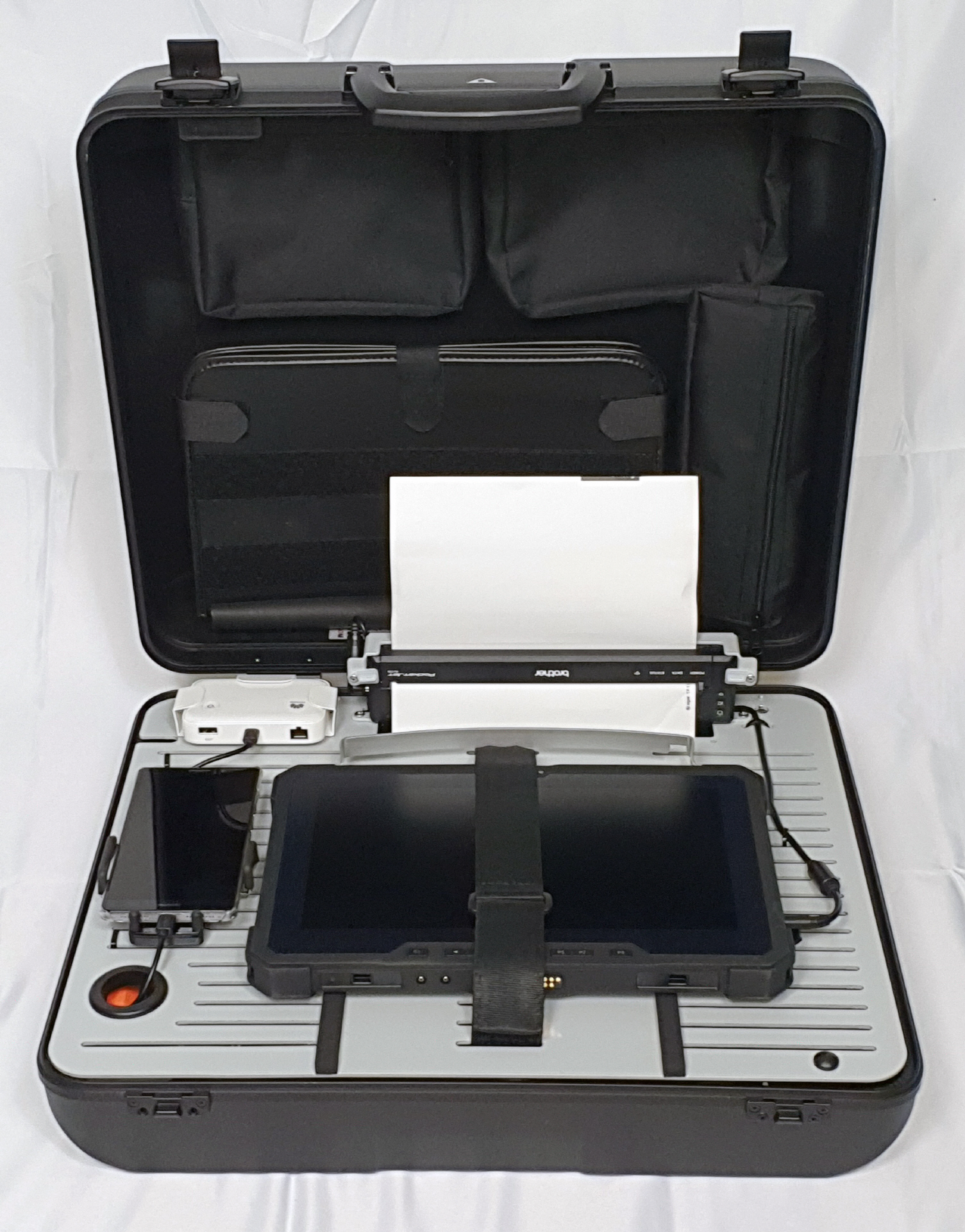 | Ausführung | Intebral Kofferschale, Alu-Profil, ABS-HSX superleicht, Gewicht inkl. aller Komponenten mit BROTHER PJ-Drucker ca. 10,3 kg |