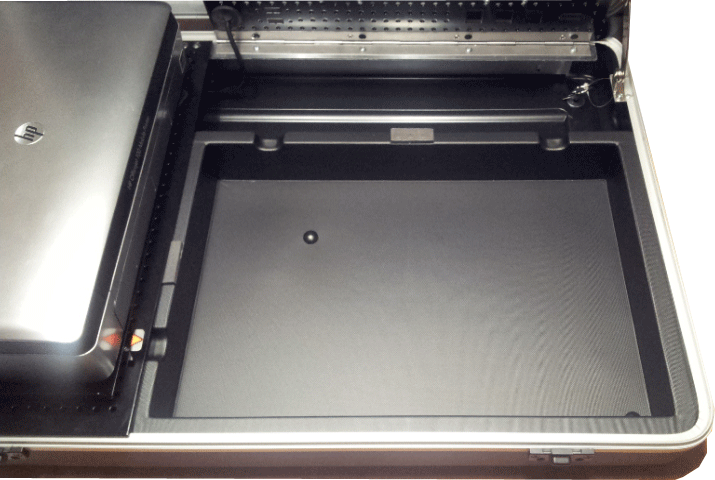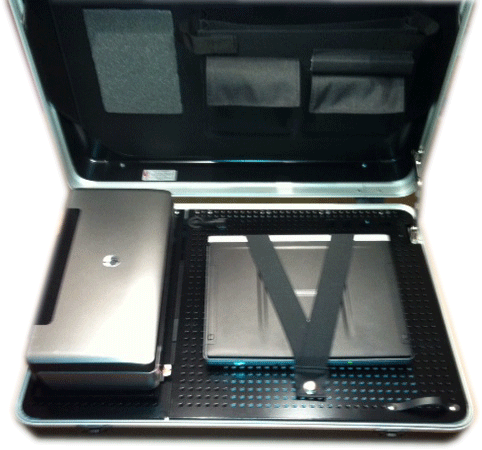 Der Systemkoffer PX 6 Universale kann Notebooks mit oder ohne Docking Station bis 17 Zoll aufnehmen. Die schwenkbare Druckerhalterung ermöglicht überall ein ergonmisch optimiertes Arbeiten. Große Stauchfächer und Innentaschen lassen keine Wünsche offen. Die Ladung der Geräte erfolgt über eine interne 220V-Verkabelung mit Außenanschluß.
