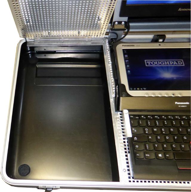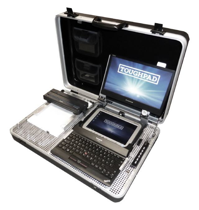 Der PX-G1 Systemkoffer für das Panasonic Toughpad FZ-G1 setzt Maßstäbe in Ergonomie und Ausstattung. Eine modifizierte aktive PANASONIC Docking-Station bildet das Herzstück für die vielfältigen Konfigurationsmöglichkeiten. Ein zusätzlicher, schwenkbarer Display und eine entnehmbare Tastatur bietet dem Anwender einen hohen Bedienungskomfort. Idealerweise für die elektronische KFZ-Prüfung und technische Industrie-Revisionen geeignet.